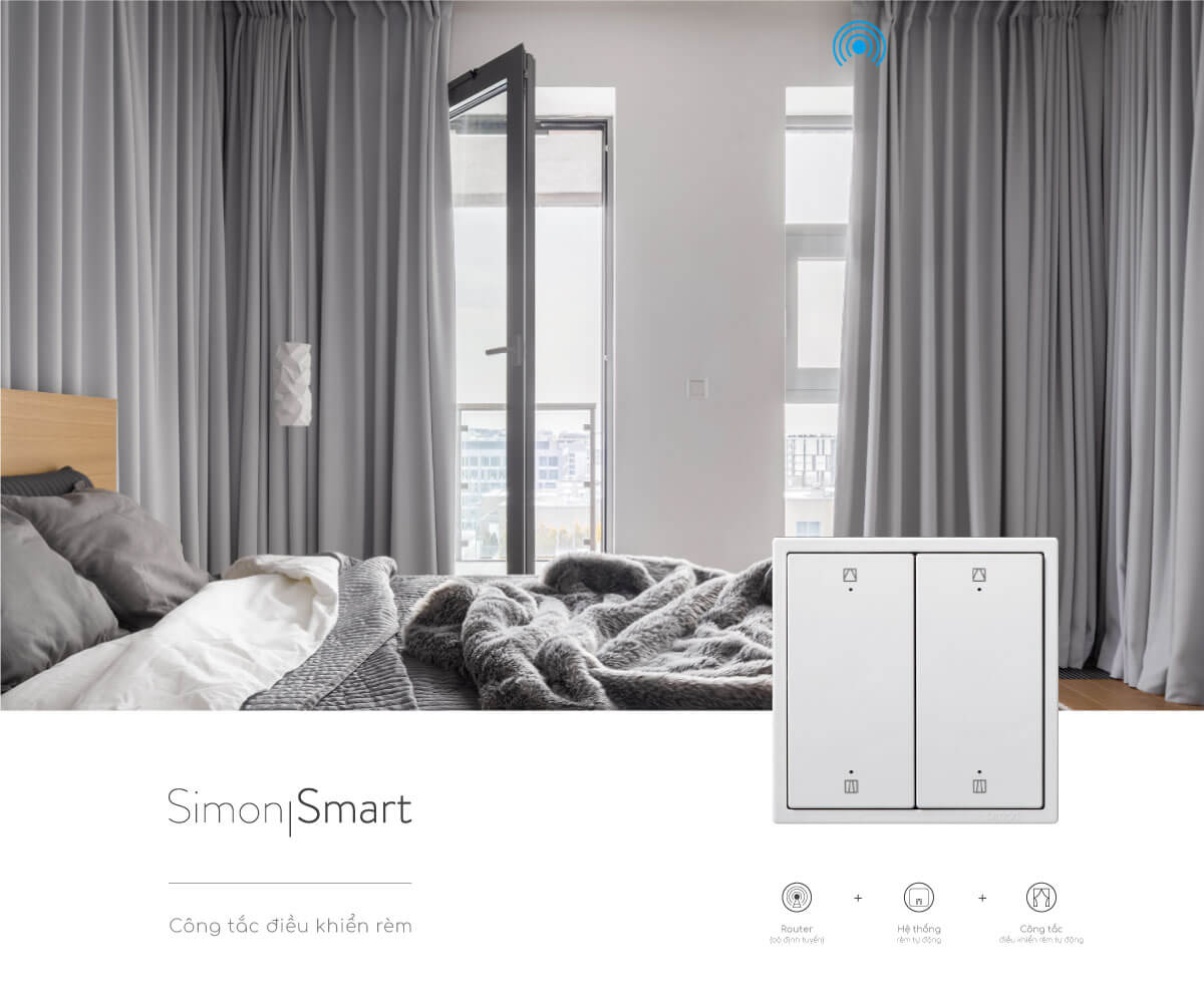 - Combo 1: Công tắc rèm đôi Simon i7 Smart kết hợp với Smart Gateway và rèm thông minh để mang lại trải nghiệm điều khiển toàn diện từ xa.