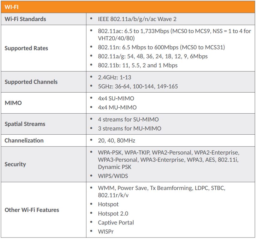 Công nghệ truyền dữ liệu tốc độ cao chưa từng có MU-MIMO 4×4:4 đáp ứng nhu cầu triển khai mạng không dây trong môi trường có mật độ người sử dụng cao.